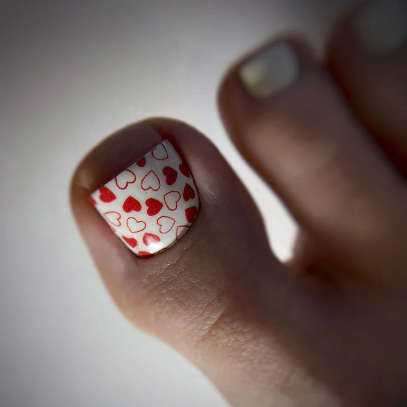 6. Breng het naar de nagel en plaats het net voor de nagelriem. Verwijder volledig de witte filmen plaats de slider op naar de nagel. De slider rekt
