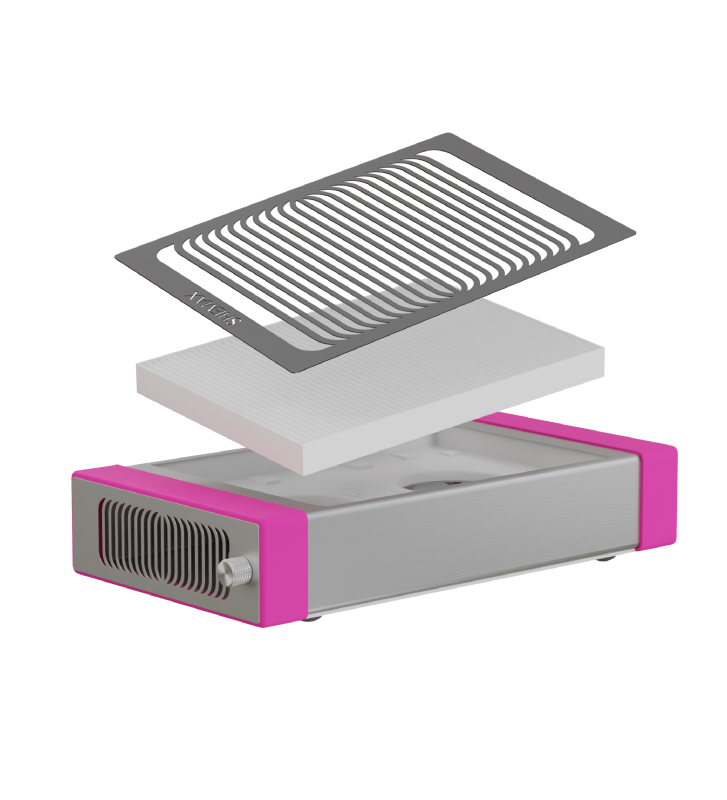 De afneembare grill van de machine zit met magneten vast. De grill is makkelijk te verwijderen om het filter te reinigen. Onder de grill zit het herbruikbare filter wat uitgeklopt kan worden. Wij adviseren het filter na een werkdag te legen en elke 2 maanden te vervangen bij fulltime gebruik (6 klanten per dag, 5 dagen per week). Naast het bijgeleverde filter zijn de filters ook los verkrijgbaar. Voor een langere levensduur van uw machine raden wij aan dit advies op te volgen. Gebruik geen filters welke niet voor deze machine bestemd zijn. Dit kan het vermogen doen toenemen en de machine kan hierdoor oververhit raken.