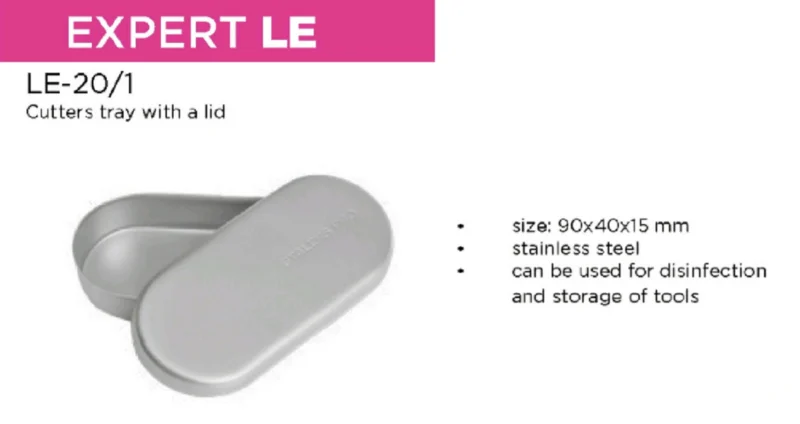 De Staleks Tray for Drill Bits Pro Expert is een handig roestvrij stalen bakje met deksel. Dit bakje is ideaal voor het desinfecteren van freesbitjes van uw elektrische nagelfrees. Tevens is dit bakje voorzien van een deksel.